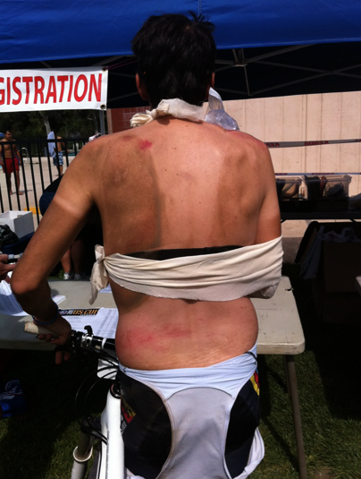 (claimer: this is a teammate of mine from a couple weeks ago, and I am still trying to figure out how the dirt ended up like that because I know he was wearing a jersey when this happened)